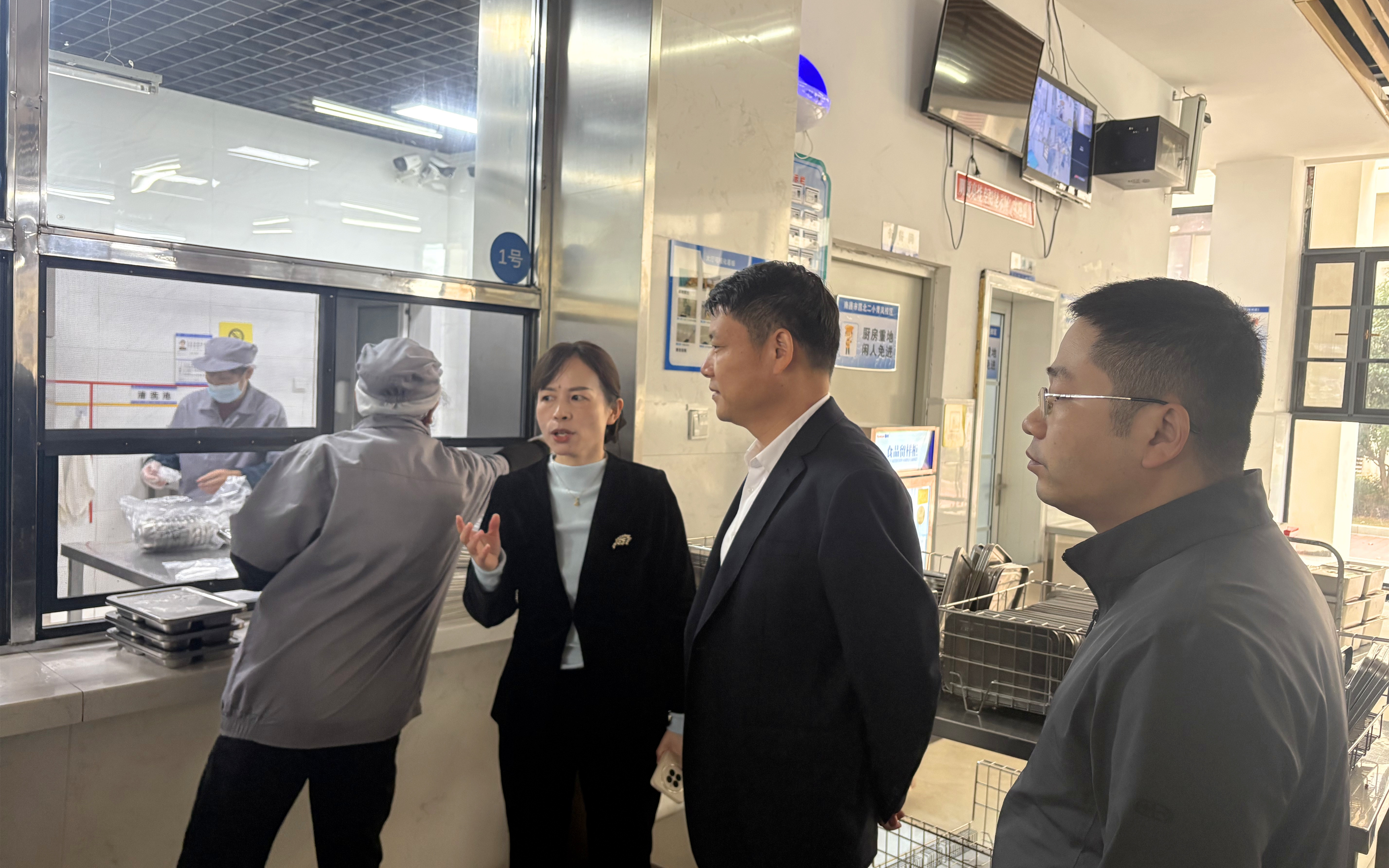 调研中,罗贤锦一行深入各校区食堂,实地查看食材储存、就餐环境等关键环节,详细询问食材采购流程、食品安全管控及日常运营情况,并与校方负责人深入交流,倾听校方对校餐服务的意见建议。