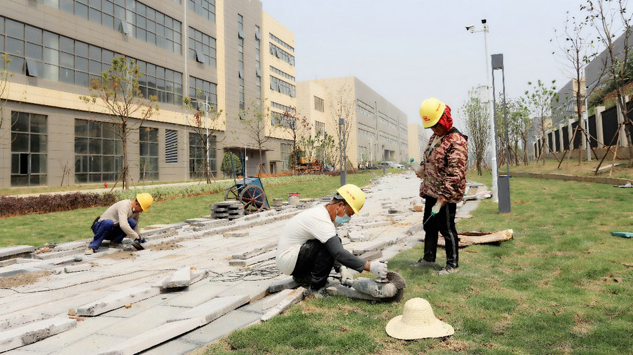 室外道路、绿化、人行道施工完成约95%,