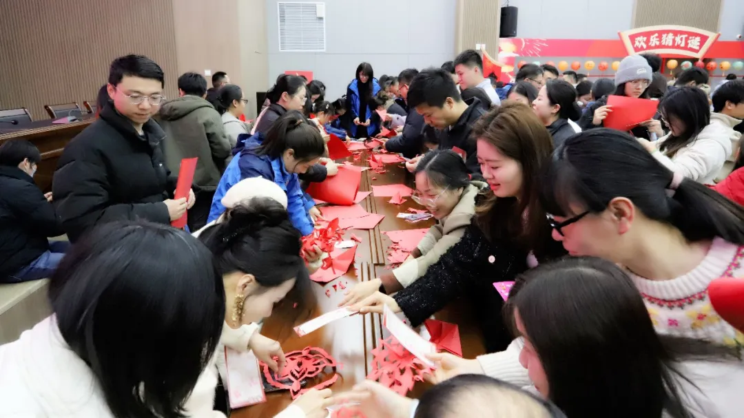 现场活动以“集五福,赢好礼”为主线,精心设置猜灯谜、剪窗花、幸福套圈、欢乐夹元宵、幸运滚滚乐五大趣味项目,将传统民俗与互动游戏巧妙融合。职工们手持集福卡踊跃参与、默契协作,在轻松愉悦的氛围中穿梭打卡、集章兑奖,现场张灯结彩、欢声笑语不断,处处洋溢着大家庭的温暖与活力。
