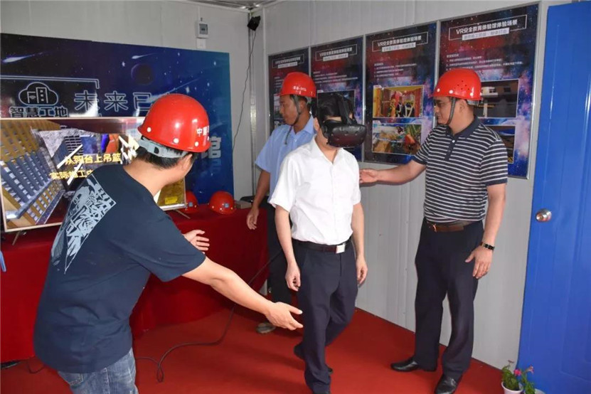 参观过程中,潘贤林在讲解员的帮助下进行了VR安全体验,并对该项体验给予了高度肯定,他表示:这种新颖的安全体验能够帮助工程人员更加深刻地了解施工安全的重要性,时刻绷紧安全施工的这根弦。